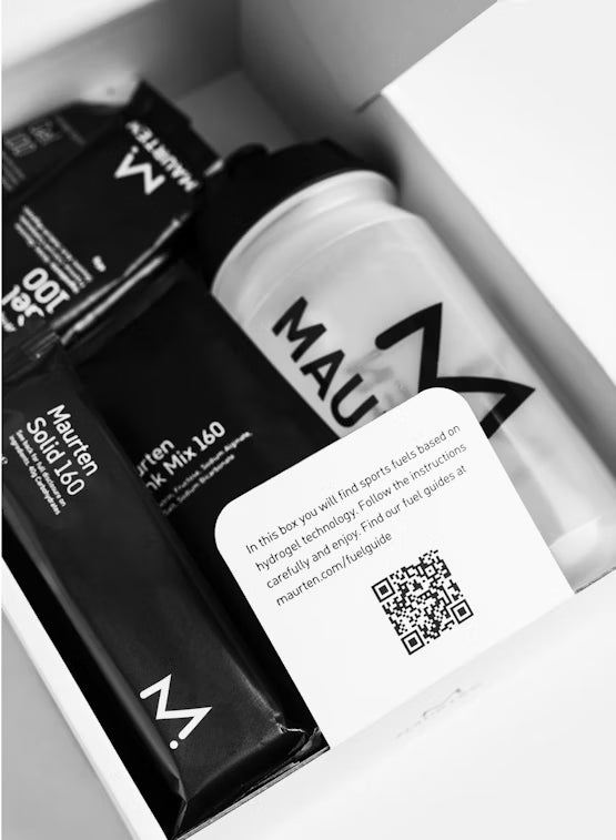 This is the Maurten Marathon Race Collection — a curated race day fueling solution. Each pack includes 7 x Gel 100, 2 x Drink Mix 160, 2 x Drink Mix 320, 2 x Solids, and a Maurten 500ml bottle.